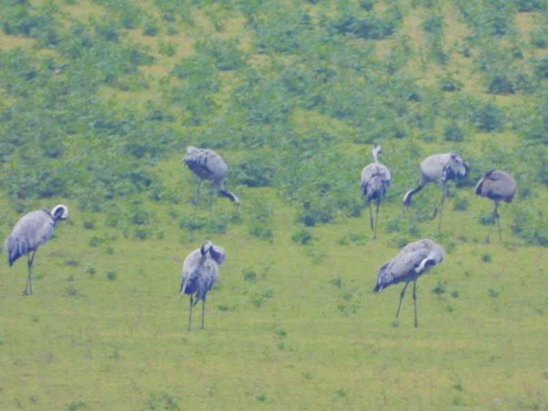 10月19日:南矶湿地神宕湖监测点迎来一个小高峰,观测到42只灰鹤集群活动。