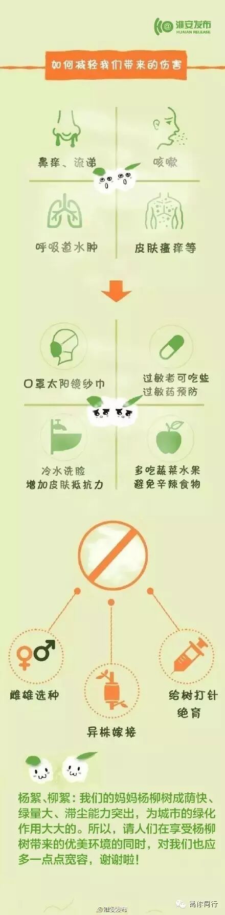 对于已经栽种数年的柳树和法桐,可以采取“高接换头”(在雌株上嫁接雄株)的方法,改善树种逐步防治,而不象“网传”的那样可怕,也没必要“谈絮色变”。
